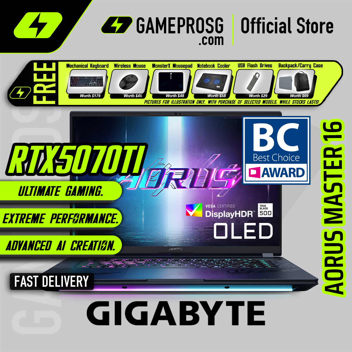 AORUS Master 16 is a powerful AI-enhanced gaming laptop with next-gen NVIDIA GeForce graphics, a high-refresh 16-inch display, and intelligent performance optimization for faster, cooler, and smarter gaming and creation.