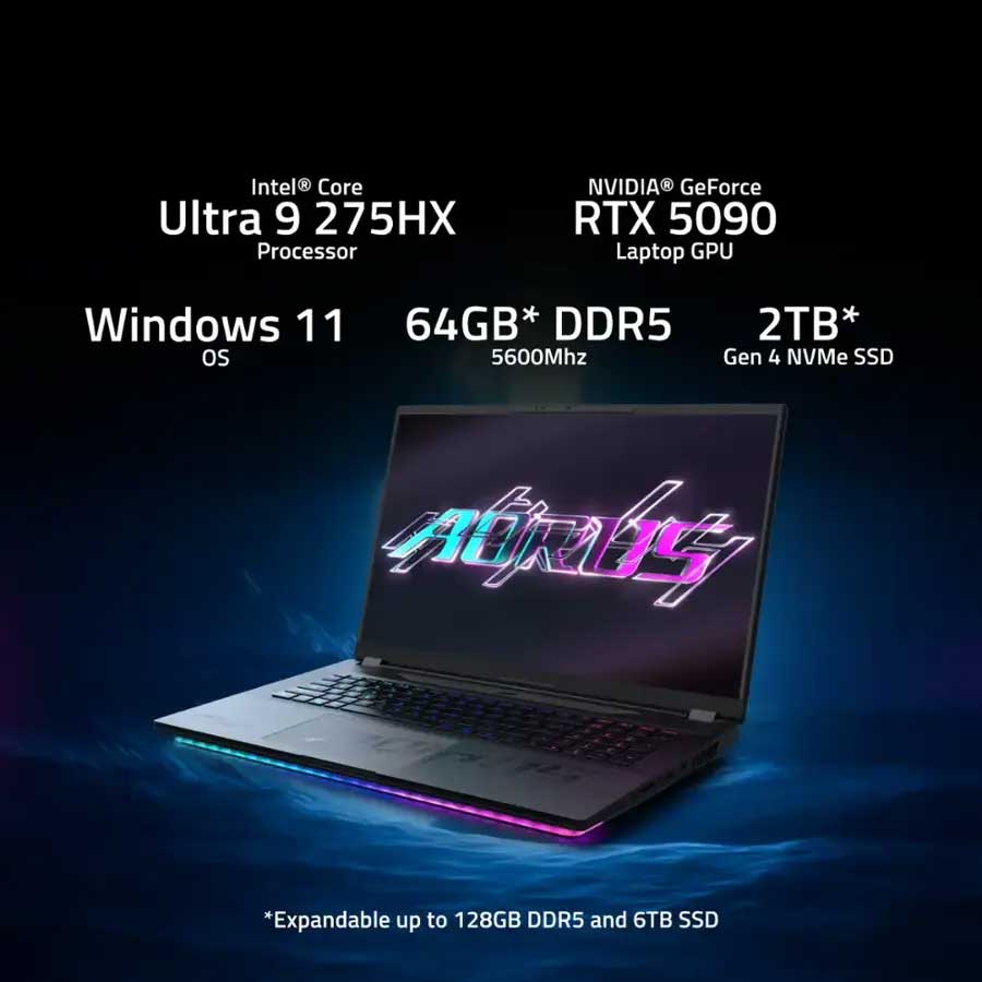 AORUS MASTER 18 BZH AI Gaming Laptop / Intel Core Ultra 9 275HX Processor / NVIDIA GeForce RTX 5090 Graphics / Mini-LED