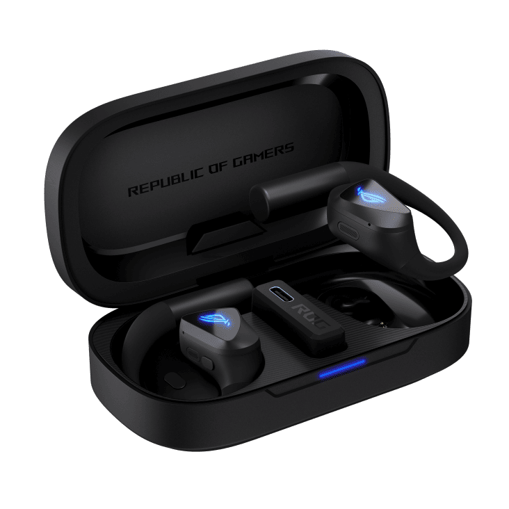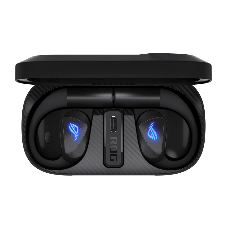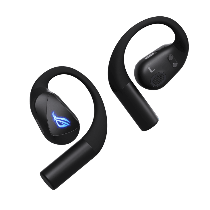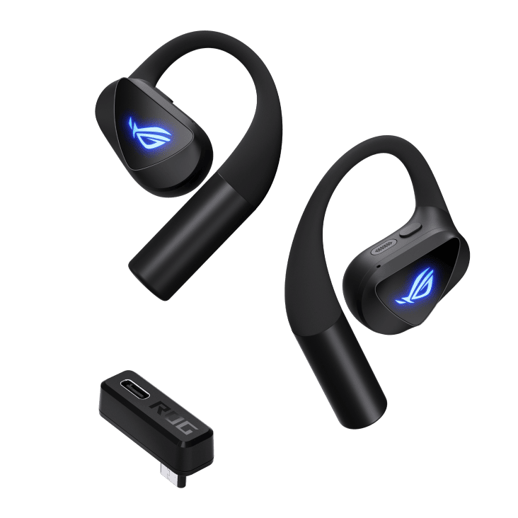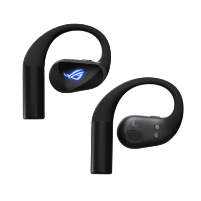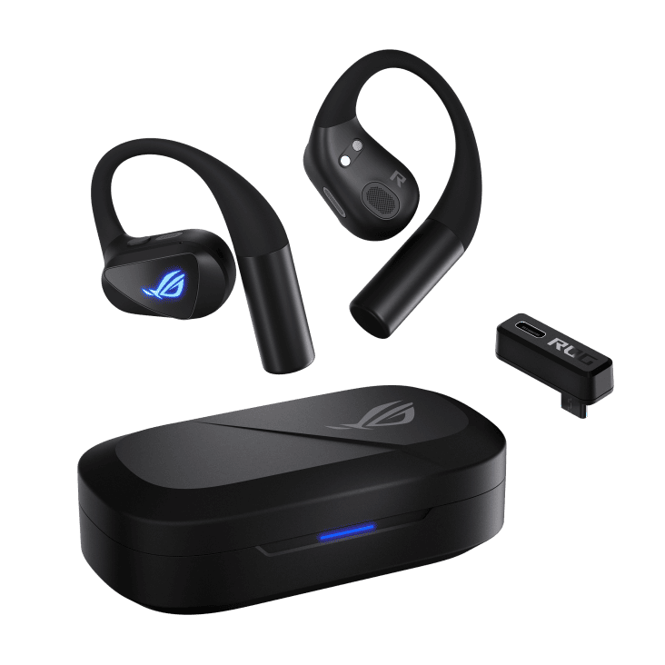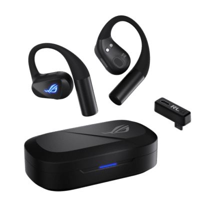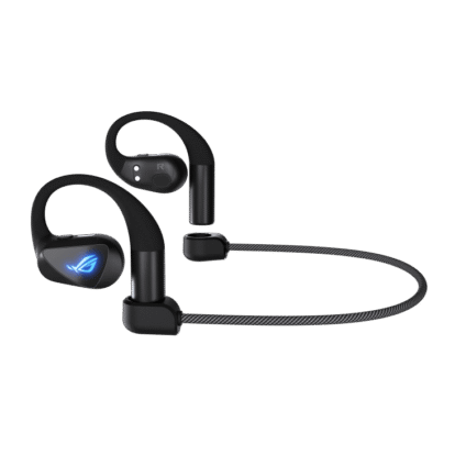 ROG Cetra Open Wireless Gaming Earbuds with dual-mode Bluetooth® and ultra-low-latency ROG SpeedNova 2.4 GHz connectivity with USB-C one-way passthrough charging, 14.2 mm Diamond-Like Carbon Drivers, open-ear design, detachable neck strap, Quad-Mic with AI Noise Cancellation