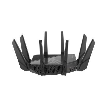 • GT-AX11000 Pro Tri-Band WiFi 6 gaming router, 2.5G port, 10G port, enhanced hardware, ASUS RangeBoost Plus, 5.9 GHz, Triple-level game acceleration, free network security and AiMesh support