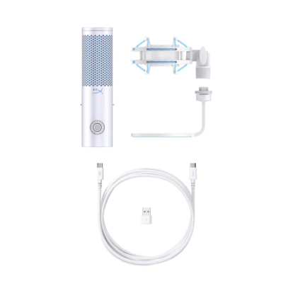 The HyperX QuadCast 2 refines everything that made the original such a favorite amongst gamers, streamers, and content creators around the world. All the fan-favorite features are still here: the iconic stunning lighting, the tap-to-mute sensor, 4 selectable polar patterns, 3.5mm headphone jack and included shock mount and desktop stand but now with a range of innovative additions and packaged in a new sleek, full aluminum silhouette. QuadCast 2 features upgraded 24-bit, 96kHz recording for a studio quality recording experience. It also features a redesigned detachable shock mount with improved performance and innovative spring-loaded pins, making removal easy and allowing the use of universal shock mounts.1 In response to our fan’s feedback, QuadCast 2 now includes a multi-function knob so you can do everything on-board without needing to alt-tab. The knob allows users to choose between microphone gain, playback volume, microphone monitoring volume, and can also switch polar patterns. The LED indicator also makes it easy to determine the current mic status without the hassle of going into the software. Users can choose different lighting effects and tune their mic via HyperX NGENUITY. The HyperX QuadCast 2 – the new standard for streaming microphones.