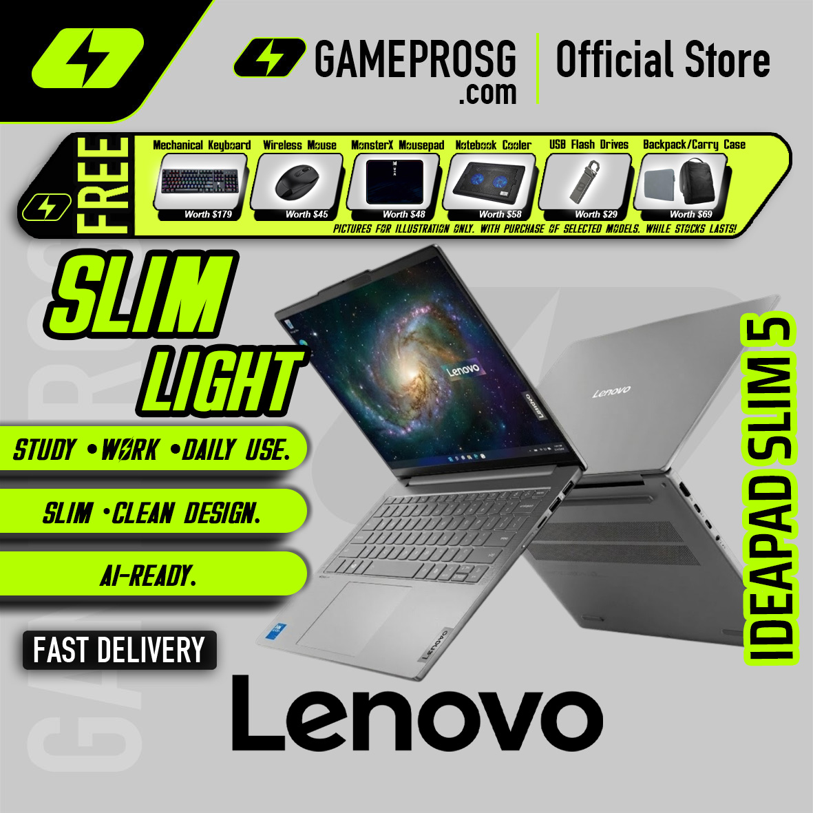 Gaming Laptop, Laptop Singapore, MSI, ASUS, Lenovo, GIGABYTE, AORUS, Dell, Alienware, XPS, HP, Victus, Omen, Acer, Predator, Nitro, Huawei, Microsoft, Surface, Razer, Samsung, Galaxy Book, Intel, AMD, Ultra 7, Ultra 9, Core i3, Core i5, Core i7, Core i9, Ryzen 3, Ryzen 5, Ryzen 7, Ryzen 9, RTX 3050, RTX 4050, RTX 4060, RTX 4070, RTX 4080, RTX 4090, RTX 5050, RTX 5060, RTX 5070, RTX 5080, RTX 5090, Ti, Super, OLED, IPS, FHD, QHD, UHD, 4K, 60Hz, 120Hz, 144Hz, 165Hz, 240Hz, 288Hz, 300Hz, 360Hz, Touchscreen, 2-in-1, Convertible, Business Laptop, Student Laptop, Creator Laptop, Workstation, Ultrabook, Notebook, Chromebook, Thin and Light, Portable, DDR4, DDR5, SSD, HDD, 512GB, 1TB, 2TB, 4TB, NVMe, SATA, Windows 11, Windows 10, Chrome OS, 13 inch, 14 inch, 15 inch, 16 inch, 17 inch, 18 inch, Best Laptop, Cheap Laptop, Budget Laptop, Premium Laptop, Luxury Laptop, Laptop Sale, Laptop Promotion, Laptop Deal, Laptop Free Gift, Laptop Warranty, LOQ, Legion, Legion Pro, Legion 5, Legion 7, Legion Pro 5, Legion Pro 7, IdeaPad, IdeaPad Slim, IdeaPad Pro, IdeaPad Flex, Yoga, Yoga Slim, Yoga 7, Flex 5, ThinkPad, ThinkBook, LOQ 15, LOQ 16, Legion Tab, Legion Go, Ryzen AI, Intel Ultra, Convertible Laptop, 2-in-1 Laptop, Gaming Handheld, Gaming Tablet, LPDDR5, LPDDR5X, WQXGA, WUXGA, 2.8K, 3K, 500nits, 120Hz Touch, OLED Touch, Soldered RAM, LPDDR4x, Glacier White, Arctic Grey, Luna Grey, Seashell, Polar Blue, High Refresh Rate, Esports Ready, Content Creation, Video Editing, Streaming Laptop, Programming Laptop, Student Laptop, Business Laptop, Home Laptop, Portable Gaming, Mobile Workstation, AI Processor, NPU, XDNA, RDNA, Arc Graphics, Radeon Graphics, GDDR6, GDDR7, PCIe 4.0, UFS 4.0, MediaTek, Dimensity, Qualcomm Snapdragon, Adreno GPU