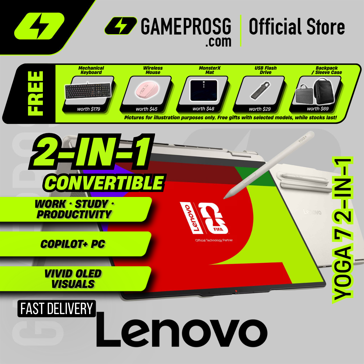 Lenovo Yoga 7 2-in-1 Convertible Laptop – 14″ WUXGA OLED – Intel Core Ultra 7 – 32GB RAM – 1TB SSD