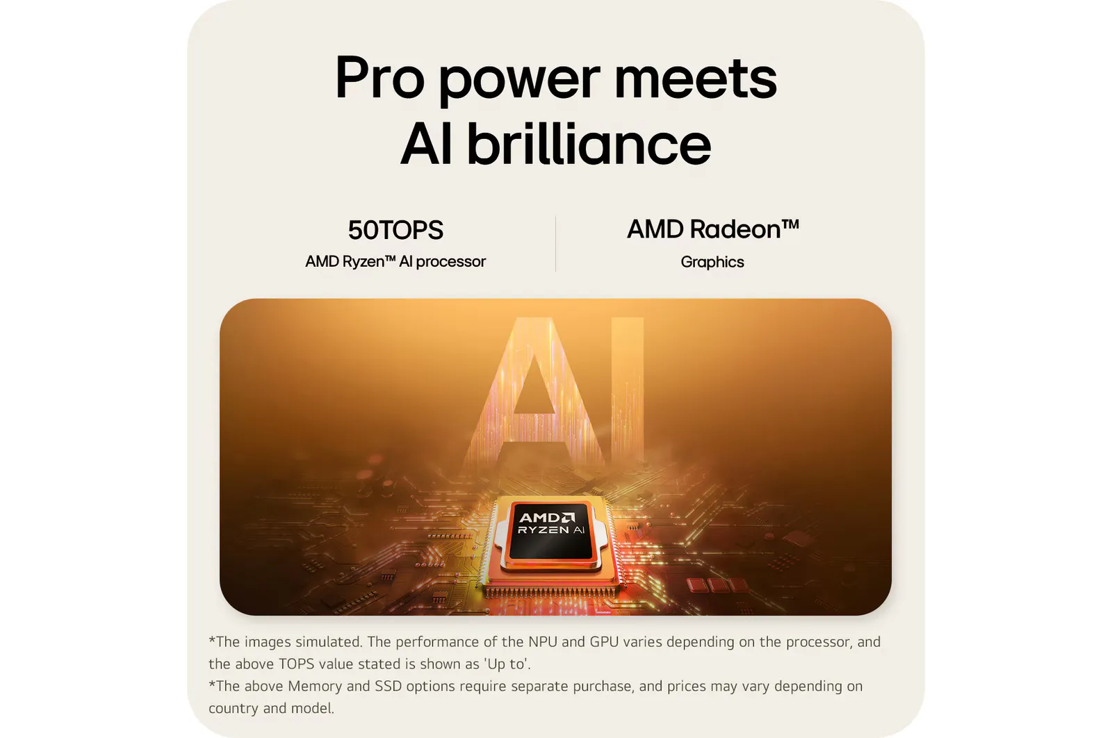 Ultra-light 16″ LG Gram Pro with AMD Ryzen AI and Copilot+ PC features. Equipped with 32GB RAM for smooth multitasking, large IPS display, long battery life and portable design, ideal for AI productivity, work and daily use on Windows 11 Home.
