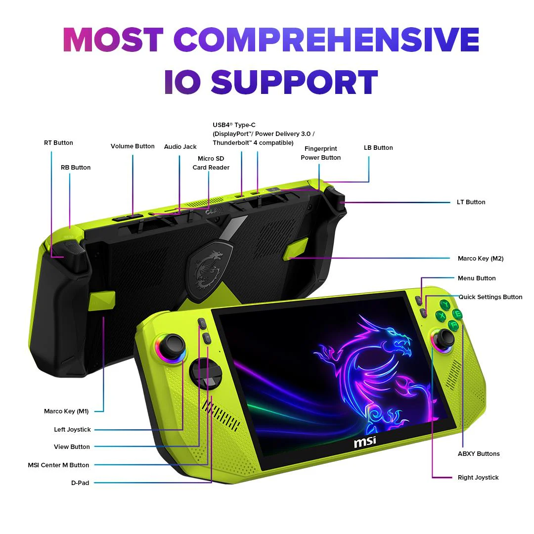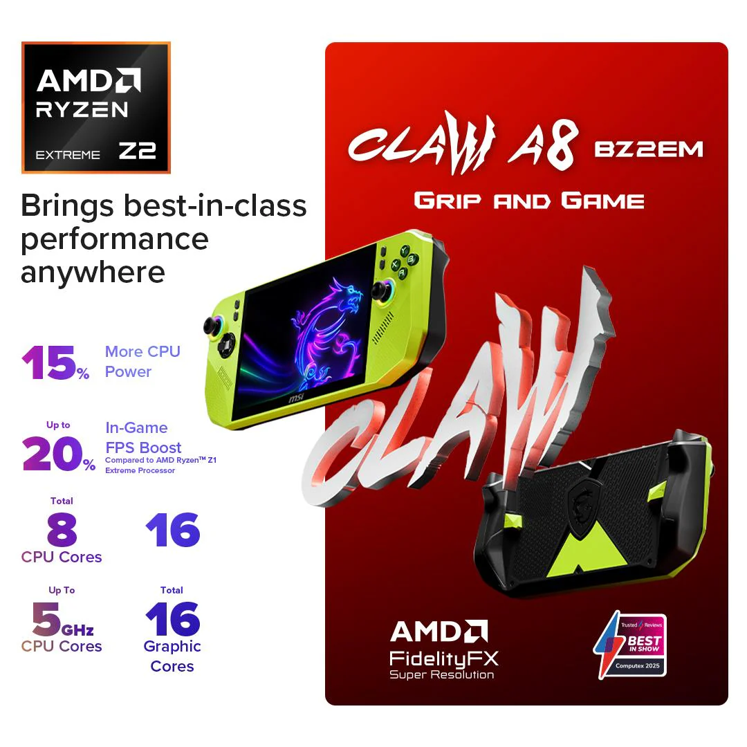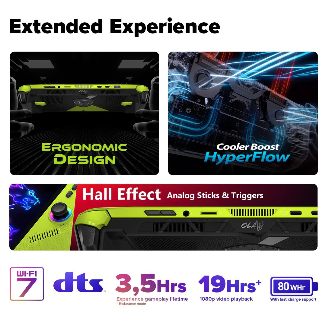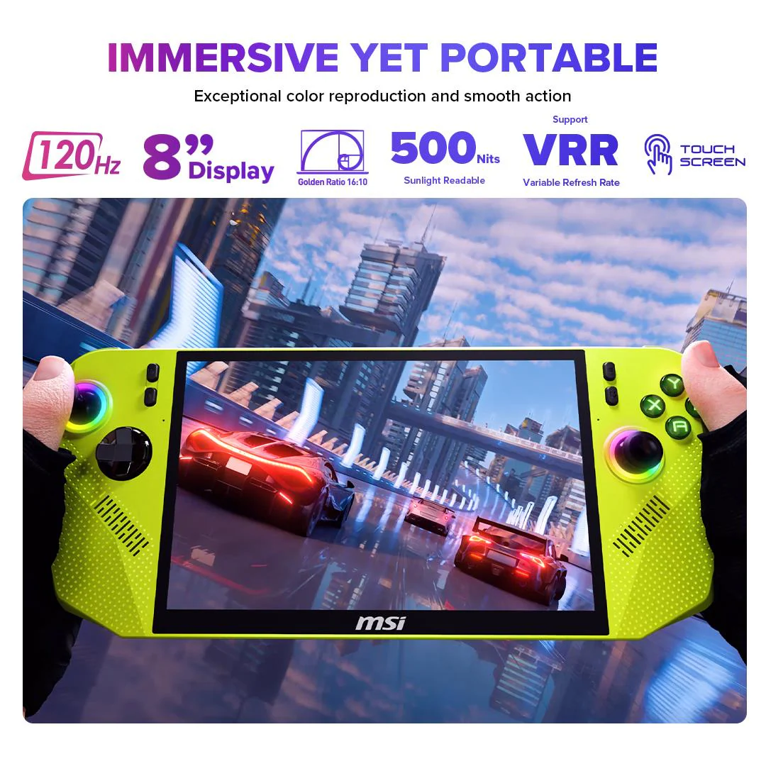 Meet the first handheld built with AMD Ryzen™ Z2 Extreme — designed for next-gen gaming on the go. Stay in the game longer with an 80Whr battery, immerse yourself in smooth visuals on an 8″ 120Hz VRR display, and enjoy ultra-precise Hall effect analog sticks and triggers that resist drift for lasting accuracy. With MSI Center M seamlessly integrated with Xbox Game Bar, you can launch titles across platforms and stay in control at all times.