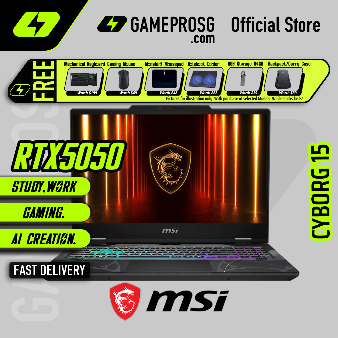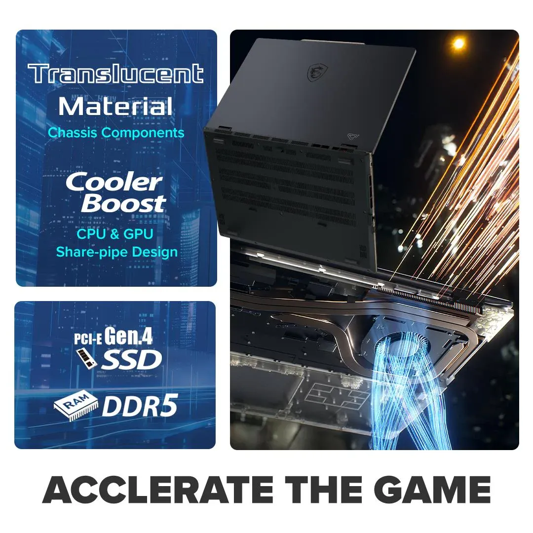 Future gaming reimagined: Cyberpunk meets sci-fi. MSI Cyborg 15, mech-inspired design, next-gen laptop redefined.
