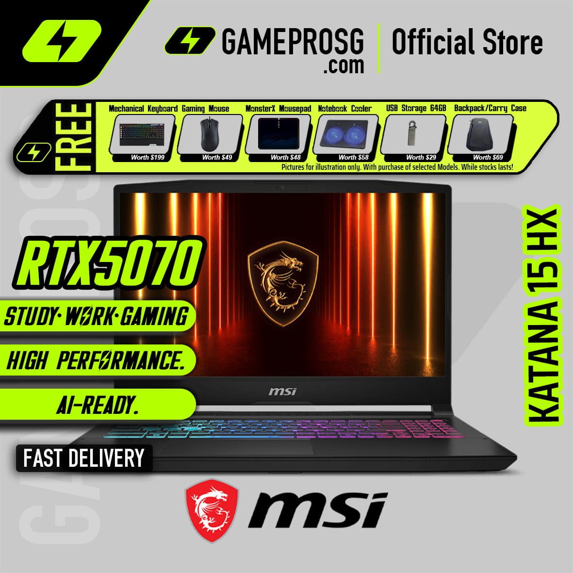 MSI Katana 15 HX B14WGK Gaming Laptop — RTX5070 – 15.6″ QHD 165Hz – i9-14900HX – 16GB RAM – 1TB SSD (For Gamers & Creators)