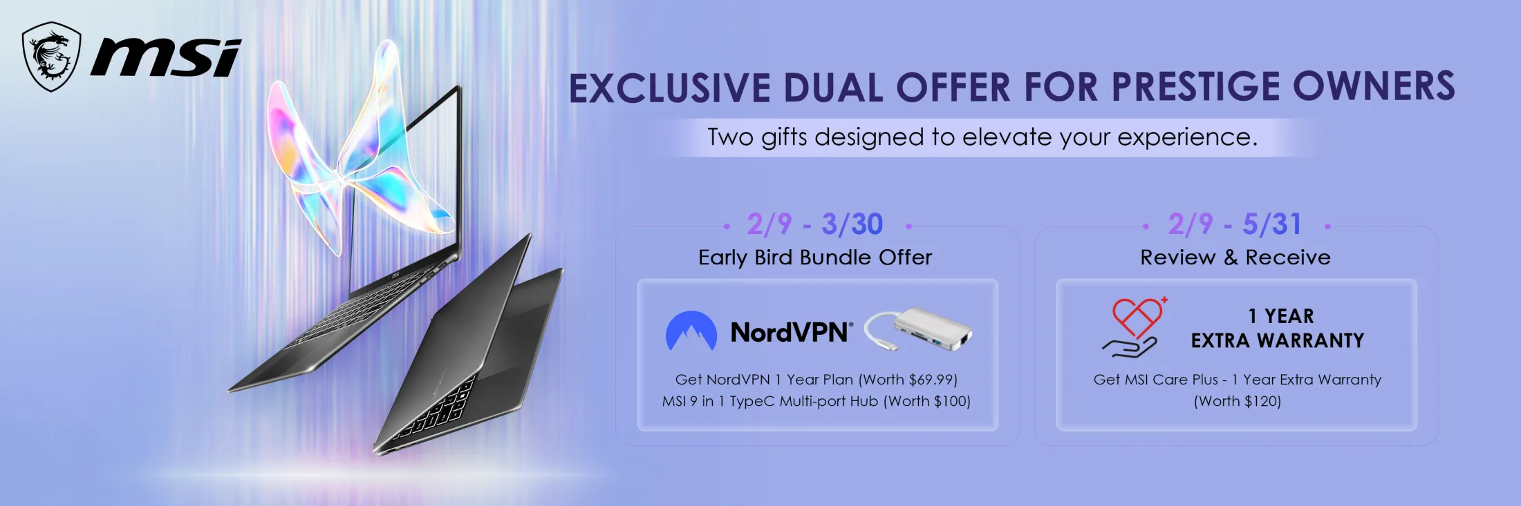 Early Bird Offer — Exclusive Dual Offer for Prestige Owners Unlock 2 premium rewards with your new MSI Prestige laptop.