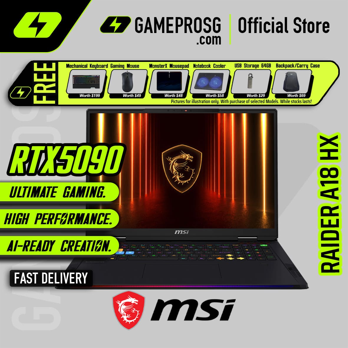 MSI Raider A18 HX Gaming Laptop — 3D V-Cache Speed — RTX 5090 – 18″ UHD+ 120Hz – Ryzen 9 – 32GB – 2TB