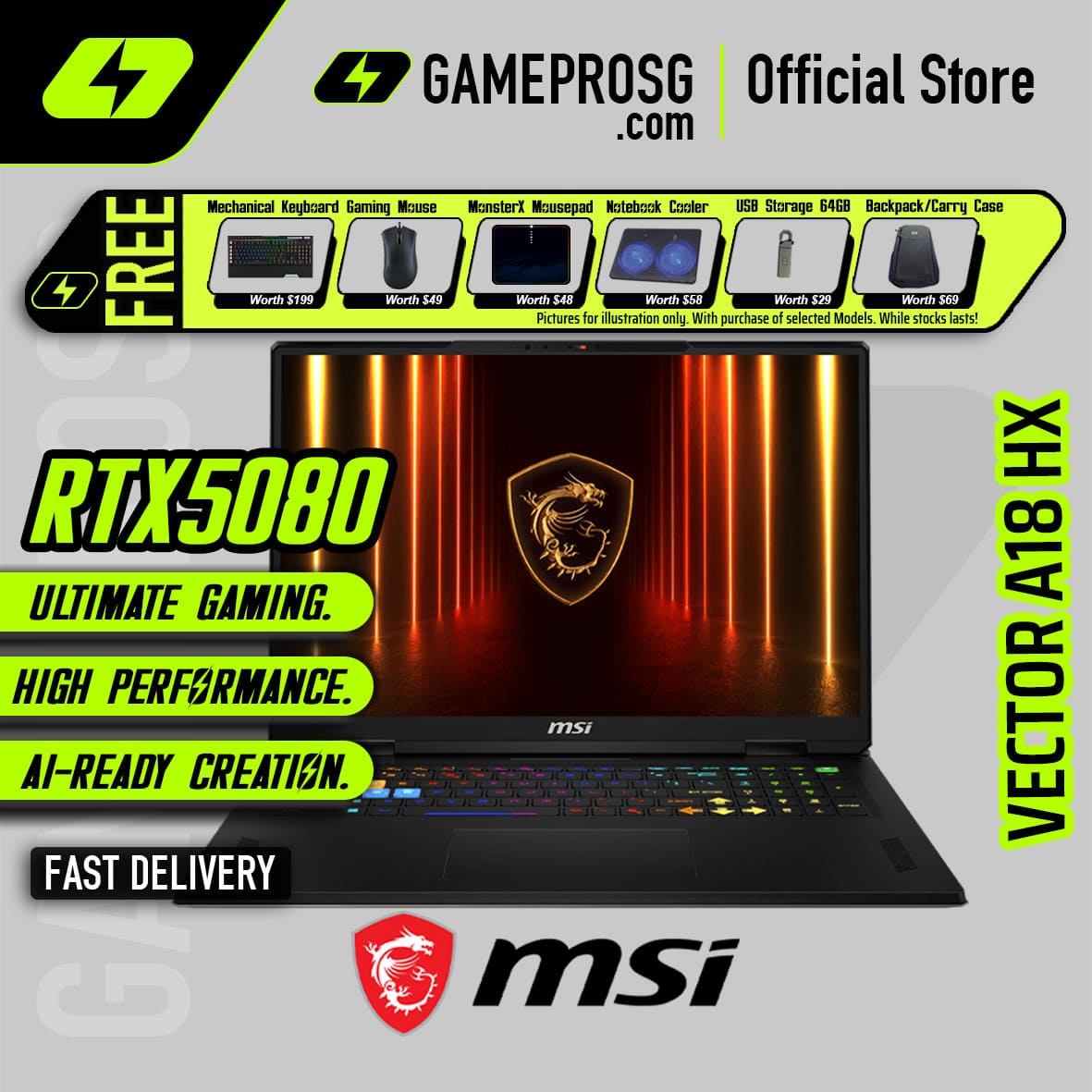 MSI Vector A18 HX Gaming Laptop — Desktop Replacement — RTX 5080 – 18″ QHD+ 240Hz – Ryzen 9 – 32GB – 2TB