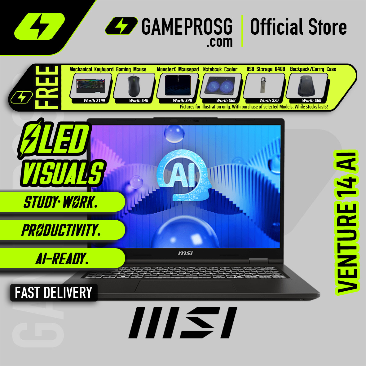 MSI Venture 14 AI Laptop — Advanced Business Pro — 2.8K OLED 120Hz – Intel Ultra 7 – 16GB – 1TB SSD