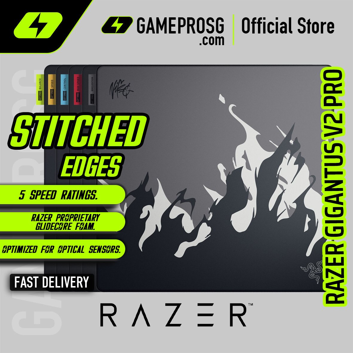 Designed for precision and customization, the Razer Gigantus V2 Pro features 5 speed ratings and stitched edges. Built for smooth tracking and consistent control for competitive gaming.
