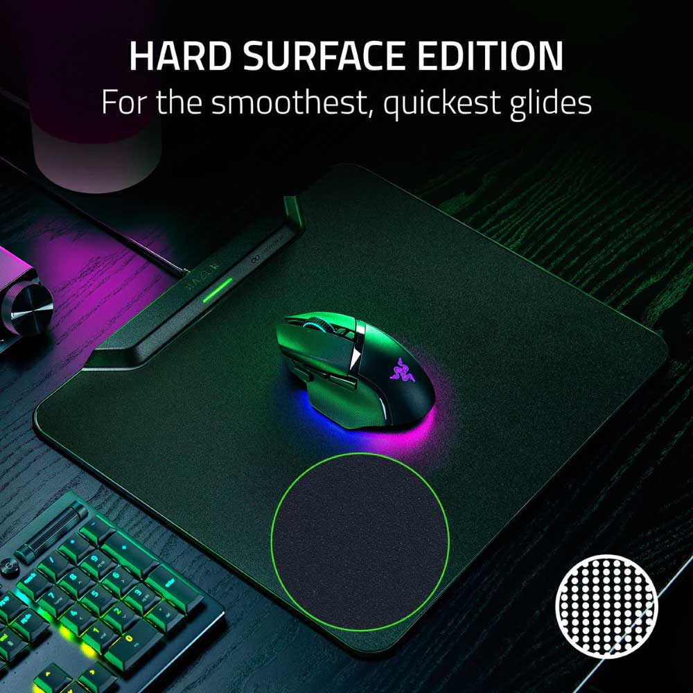 Tap into unlimited power with the Razer HyperFlux V2 Wireless Charging System. Pair it with our wireless gaming mice for a dongle-free setup that continuously powers your mouse as you game. Choose between a hard or cloth mouse pad to swipe with greater speed or control.
