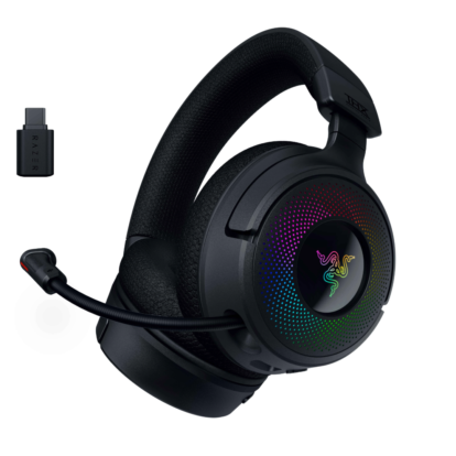 Unleash the limits of immersion with the Razer Kraken V4—a wireless gaming headset powered by Razer ChromaRGB. Supercharged with 3 modes of connectivity, a super wideband mic, and 9-zone earcup lighting, redefine how you play in every way imaginable.