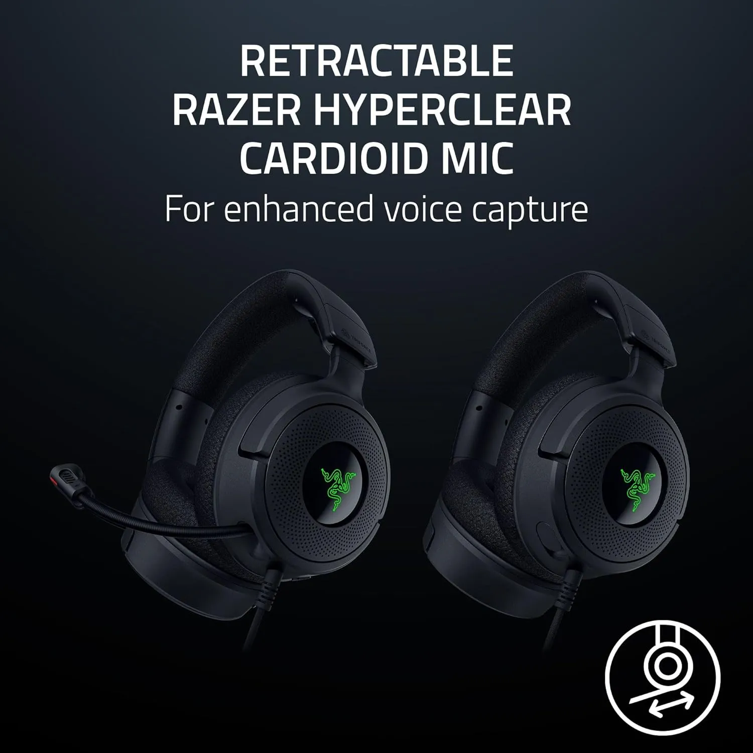 • Retractable Razer HyperClear Cardioid Mic for enhanced voice capture