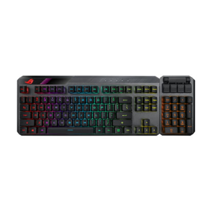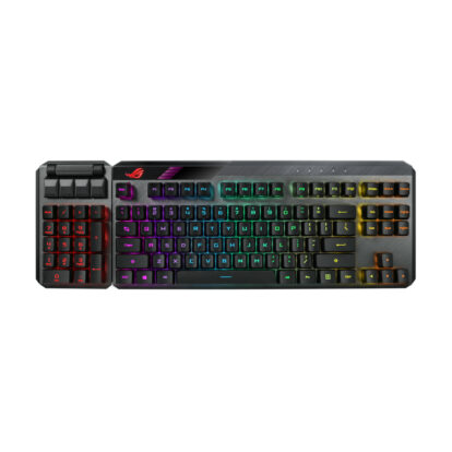ROG Claymore II modular TKL 80%/100% gaming mechanical keyboard with ROG RX Optical Mechanical Switches, detachable numpad & wrist rest, wired & wireless 2.4G modes, extra customizable clicky hotkeys, volume control wheel and wireless Aura Sync.